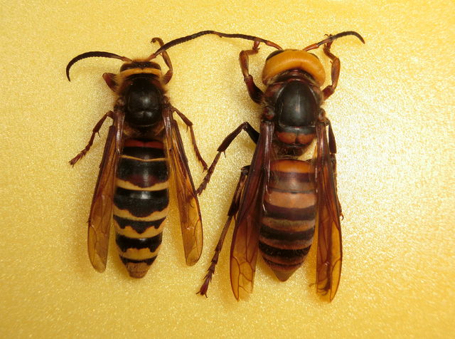 そう言えば、スズメバチの雄と雌で針があるかどうかが違うらしいと後で気がついたのですが、見分け方は下のモノのようです。
