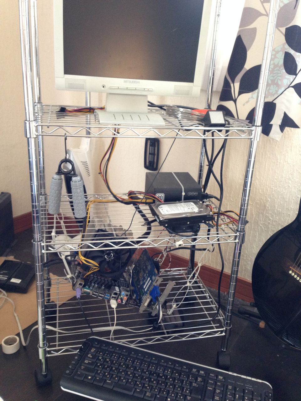 とまぁ、パソコンを自作といってもたいして凄い事ではなく、こんなふうに簡単にパソコンは組み立てられます。今ではハードオフだとかに行ったら本の数千円で運がよければパソコンなんてできちゃうんじゃないですかね上の写真のパーツの一部(マウス、キーボード、ネットワークカード)に関してはハードオフで揃えたものです。